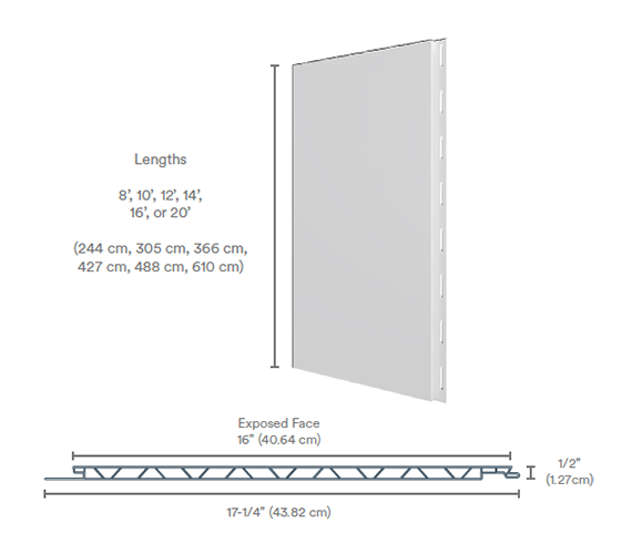 The Trusscore tongue and groove interlocking system makes installation quick and easy, and the unique truss design provides industry leading strength and durability. Trusscore Wall&CeilingBoard is available in a width of 16” that can be installed either vertically or horizontally for quick and easy installation; and comes in standard 8, 10, 12, 14, 16, and 20 foot lengths. Custom lengths are available on request.